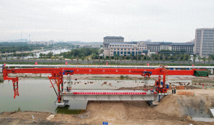 该项目T梁为预应力混凝土铁路桥简支梁,全线共计134孔,按跨距分为32米、24米、20米、16米4种型号,首孔梁架设跨距为32米,采用SGTJ180型架桥机进行架设。为确保安全、高质量、高效施工我要配资网网,东营港铁运输服务有限公司协同各参建单位对专项施工方案、T梁制作、静载弯曲试验、T梁运输、架桥机调试、架设施工等各个环节进行全过程管理、精准把控。(大众新闻记者 王明华)