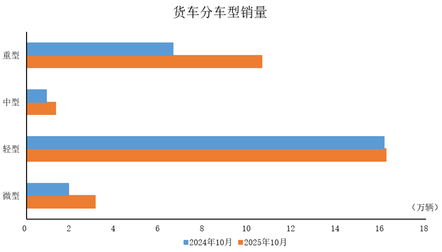 2025年1-10月配资行业四大巨头,货车产销分别完成300.1万辆和302.2万辆,同比分别增长10.6%和8.5%。在货车细分品种中,与去年同期相比,重型货车和轻型货车产销呈不同程度增长,中型货车和微型货车产销小幅下降。